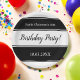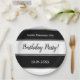 Esta elegante placa de papel blanco y negro es perfecta para un cumpleaños moderno. El diseño es sencillo y presenta una caligrafía elegante en blanco y negro sobre un fondo rayado en blanco y negro.