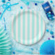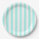 Plato De Papel Rayas de caramelo blanco y turquesa