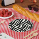 Una versión actualizada de una huella animal clásica - rayas de cebra en negro tradicional sobre fondo blanco
