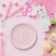 Plato De Papel Rayas de Chevron de tamaño medio rosadas y blancas