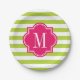 Plato De Papel Rayas de la verde lima con el monograma de las