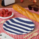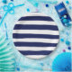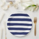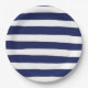 Diseño de rayas náuticas azules y blancas en placas de fiesta de papel.