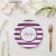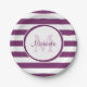 Plato De Papel Rayas moradas de magenta sólido Guay y monograma