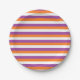 Plato De Papel Rayas moradas, Naranjas y blancas