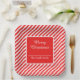 Placas de papel de rayas rojas y blancas. Es muy fácil de personalizar, con detalles de sus datos personales.