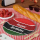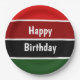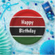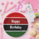 Un patrón de rayas horizontales rojo y verde y el texto: Feliz cumpleaños.