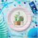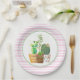 Plato De Papel Rayas rosadas y blancas con suculentas de cactus