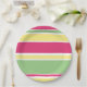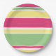 Plato De Papel Rayas rosas, verdes y amarillas