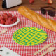 Plato De Papel Rayas verdes y finas verdes y amarillas