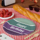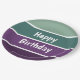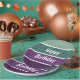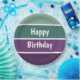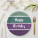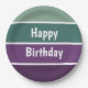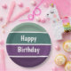Un patrón de rayas horizontales verde y violeta y el texto: Feliz cumpleaños. Puede hacer clic en personalizar y editar el texto. Escribe dos palabras en una línea.