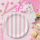 Plato De Papel Rayas verticales Bebé Rosa Y Rayas Blancas