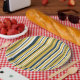 Plato De Papel Rayas verticales Mostaza Amarillo, Azul marino, Bl