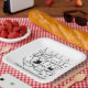 Graciosos platos de papel. Una mujer se queda inmóvil en la cocina preparándose una comida. Ella le explica a su esposo que la receta decía "¡Levántate después de cocinar!"