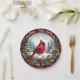 Beautiful watercolor illustration of a red cardinal perched on evergreen branches with holly berries. Set against a snowy forest and framed by a classic red and black buffalo plaid pattern, this cozy winter design captures the warmth and charm of the season.