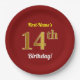 Plato De Papel Red, Faux Gold 14th Birthday + Nombre personalizad