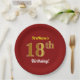Plato De Papel Red, Faux Gold 18th Birthday + Nombre personalizad