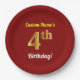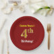 Plato De Papel Red, Faux Gold 4Cumpleaños + Nombre Personalizado