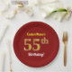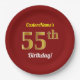 Plato De Papel Red, Faux Gold 55th Birthday + Nombre personalizad