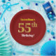 Este sencillo, personalizado, diseño de placas de papel con temática de cumpleaños incluye un mensaje de personalizable como "¡Cumpleaños 55 de CustomName!", donde se puede cambiar el nombre, y con el "55" que tiene un aspecto falso/imitación dorado. También tiene un fondo de color rojo. Las placas de papel como estas podrían ser usadas en un fiesta que se celebra para celebrar los cincuenta y cinco años de alguien. [~Z0000144]