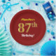 Este sencillo diseño de placas de papel con temática de personalizable y cumpleaños incluye un mensaje de personalizable como "¡UnameAquí es el cumpleaños número 87!", donde se puede cambiar el nombre, y con el "87" con un aspecto falso/imitación dorado. También tiene un fondo de color rojo. Las placas de papel como estas podrían ser usadas en un fiesta que se celebra el cumpleaños ochenta y siete de alguien. [~Z0000144]