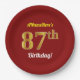 Plato De Papel Red, Faux Gold 87th Birthday + Nombre personalizad