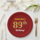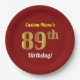 Plato De Papel Red, Faux Gold 89th Birthday + Nombre personalizad