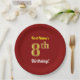 Plato De Papel Red, Faux Gold 8Cumpleaños + Nombre Personalizado