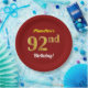 Este sencillo diseño de placas de papel con temática de cumpleaños, personalizado, incluye un mensaje de personalizable como "¡El cumpleaños número 92 de ANameHere's 92nd day!", donde se puede cambiar el nombre, y con el "92nd" con un aspecto falso/imitación dorado. También tiene un fondo de color rojo. Las placas de papel como estas podrían ser usadas en un fiesta que se celebra el cumpleaños noventa de alguien. [~Z0000144]
