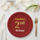 Plato De Papel Red, Faux Gold Segundo cumpleaños + Nombre persona