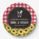 Plato De Papel Red Gingham & Sunflowers Rustic Baby-Q Shower
