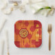 Red and orange silhouettes of various Chinese Lanterns as background + Golden vertical Chinese wishes + Happy New Year in English + small golden paper-cut of a Horse on a red lantern. Design on party paper square plate. You can delete this small image if you want to use the design for all Chinese New Years. Matching greeting card, horizontal holiday postcard, sticker and more. Perfect for Chinese New Year of the Horse 2026.