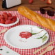 Personalizado Rosa de color rojo personalizado Boda o placa de papel de ducha. Ducha nupcial. Banquete nupcial. Rojo floral. Texto rojo.