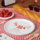 Festive red Santa inspired clothesline baby shower paper plates in a rich red color to set the tone for your event.