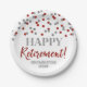 Personalizados felices planchas de retiro con un patrón de confetti rojo y plateado.