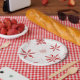 Maybe you’ve seen our bright red snow on white canvas card with white snowflakes. Now there are napkins and plates with these jumbo red Christmas snowflakes. Mix and match the red and white for your table setting and enjoy your holidays!