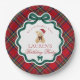Plato De Papel Red Tartan Plaid Christmas Bear Birthday Party