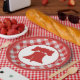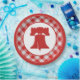 El diseño geométrico del fondo es sencillo, con un patrón de cheques de gingham, clásico, rojo y blanco, con un anillo rojo alrededor de la llanta. La Campana Roja de la Libertad en el centro representa nuestro orgullo americano. Una gran idea para tu próximo picnic por el Día de la Independencia o fiesta del 4 de julio. Este diseño es adecuado para todo tipo de eventos o eventos en el patio trasero este verano. ¡¡Dejen que suene la libertad!!