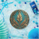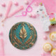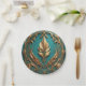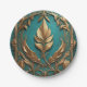 Hermosas hojas doradas sobre un fondo turquesa cubren este plato de papel redondo de 7"