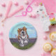 Desfile Animal Cute St. Bernard Perro Regalos y Accesorios creados por Imagine That! El diseño presenta a nuestro encantador personaje de perro blanco y bronceado parado en un patio de césped con una valla de ladrillo rojo, un cielo azul texturado y una divertida frontera violeta pintada por Traci Van Wagoner, un talentoso artista de libros para niños. El cachorro divertido se pone en juego con una pata levantada. Este divertido arte mascota es perfecto para los amantes de los perros de St. Bernard y para los amantes del arte animal de todas las edades. En muchos de nuestros extravagantes productos de perrito St. Bernard, encontrarás este adorable cachorro que viene y va con la cara de un perro de San Bernardo, juguetón, y la cola de un perro gracioso del otro lado. Únete al Desfile de Animales y trae una sonrisa a la cara de alguien que amas con un regalo de nuestro lindo perro de San Bernardo. ¡Vaya!