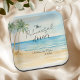 An elegant Wedding design with watercolor beach and palm trees that you can customize with your details.