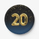 Globos de fiesta milar dorado sobre fondo azul y negro degradado con confeti estrella dorada para fiesta de cumpleaños 20 o aniversario