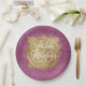 Plato De Papel Relieve metalizado Faux Gold Felices Fiestas Purpl