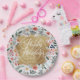 Plato De Papel Relieve metalizado Flowers Gold Faux Happy Holiday