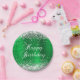 Plato De Papel Relieve metalizado Verde Purpurina Plata Feliz Cum