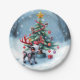 Plato De Papel Reno ciberpunk lindo con árbol de Navidad