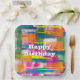 Diseño abstracto de arcoiris colorido con textura y texto Feliz Cumpleaños.