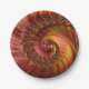 Esta bonita placa redonda de papel presenta un fractal de espiral fiero abstracto en tonos rojos y amarillos.