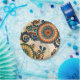 Resumen de placas de papel de mandala floral en naranja, azul, verde y marfil.