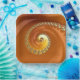 Este producto presenta un hermoso diseño de gradiente fractal espiral en tonos naranja y dorado.