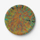 Plato De Papel Resumen Naranja quemado y el florecimiento verde d